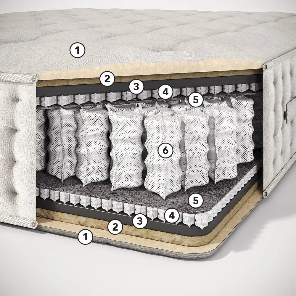The finest British steel is used to create individually nested full size and micro springs for low motion transfer, comfort and breathability for a truly rejuvenating nights sleep.